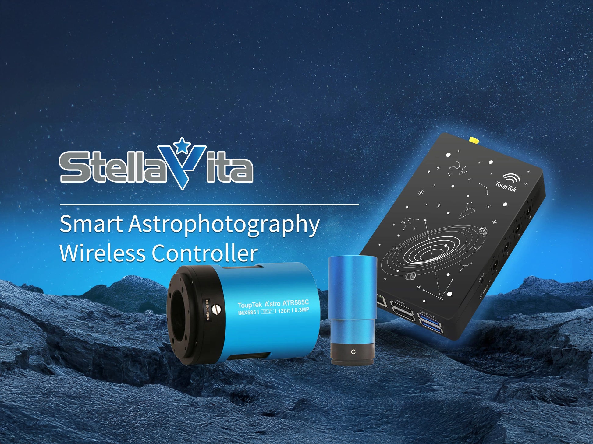 ToupTek StellaVita er en kompakt og kraftig mini-PC designet spesielt for astrofotografering. Den muliggjør enkel og effektiv fjernstyring av astrokameraer, montering, fokusere og annet tilkoblet utstyr direkte fra mobil, nettbrett eller PC.
